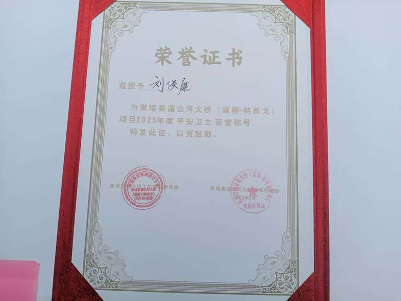 基礎(chǔ)公司柬埔寨湄公河大橋項(xiàng)目榮獲甲方好評(píng) 員工劉俊康獲評(píng)“安全衛(wèi)士”